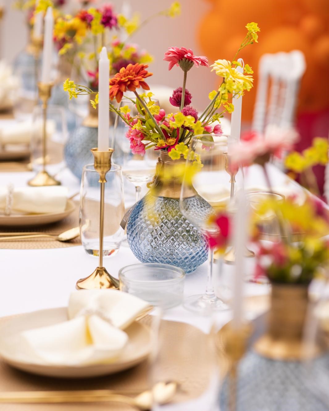 Bij ons huur je alles om jouw setting compleet te maken. Denk aan luxe tafelaankleding, tafellinnen, servies, glaswerk, kandelaars, vazen en andere sfeervolle decoratie-items. Perfect afgestemd op jouw thema, kleuren en stijl, van modern en minimalistisch tot romantisch en klassiek.